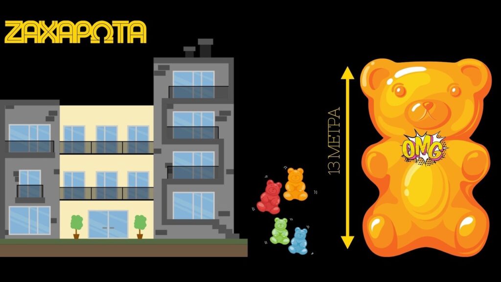 -Καταναλώθηκαν 8 τόνοι ζαχαρωτά, που θα υψώνονταν σαν ένα αρκουδάκι ύψους 8 μέτρων