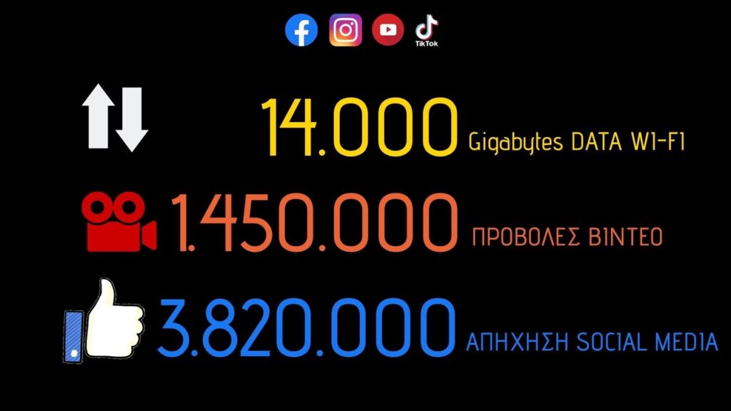 -Ξοδεύτηκαν 14.000 Giga bytes (σε δεδομένα και σε free wifi)