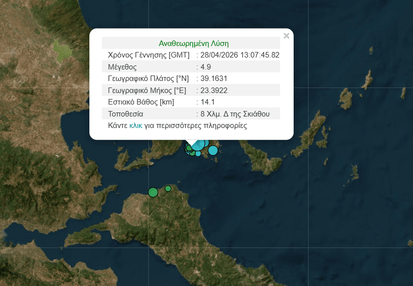 Νέος ισχυρός σεισμός 4,9 Ρίχτερ στην Σκιάθο – Είχε προηγηθεί σεισμική δόνηση 4,7 Ρίχτερ