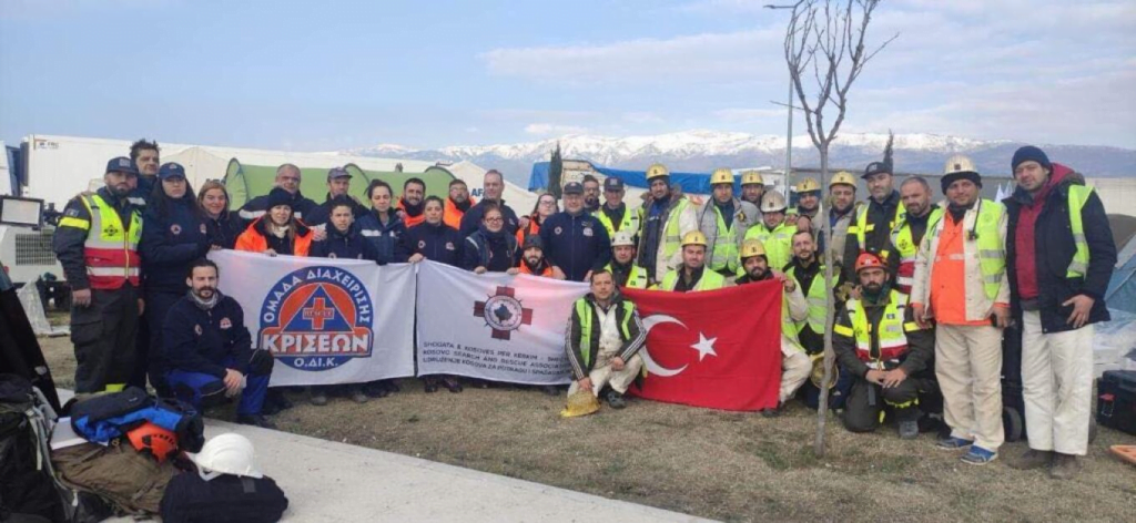 Η 18μελης αποστολή με εθελοντές διασώστες από όλη την Ελλάδα και επικεφαλής τον Κωνσταντίνο Φεζούδη, μετέβη από την Κωνσταντινούπολη οδικώς στο Χατάι και επιχειρεί με τους υπόλοιπους εθελοντές διασώστες στην σχεδόν ισοπεδωμένη τουρκική πόλη, ενώ τυγχάνει θερμής υποδοχής από τους Τούρκους πολίτες.