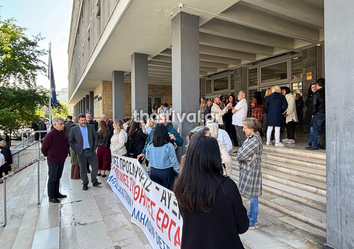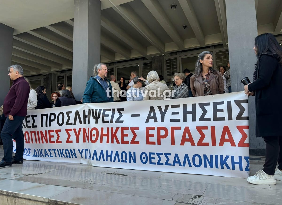 Θεσσαλονίκη: Στάση εργασίας και συγκέντρωση δικαστικών υπαλλήλων έξω από το Δικαστικό Μέγαρο μετά τις επιθέσεις του 89χρονου