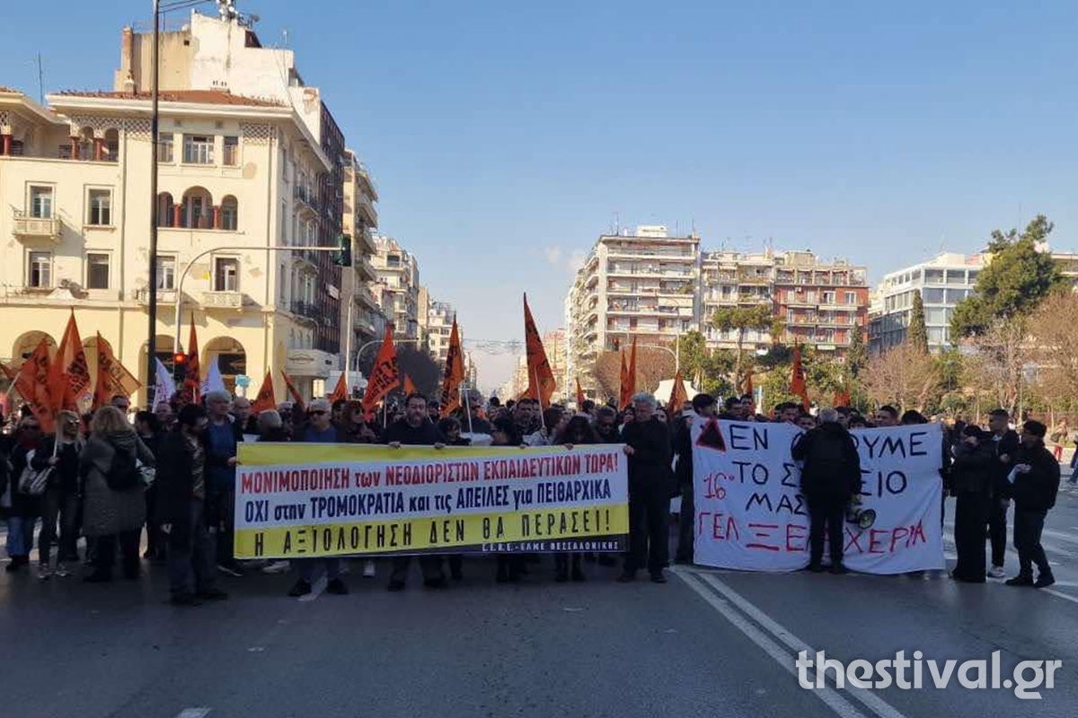 Θεσσαλονίκη: Στους δρόμους οι εκπαιδευτικοί – Διαμαρτύρονται για τα Ωνάσεια Σχολεία και την αξιολόγηση (video)