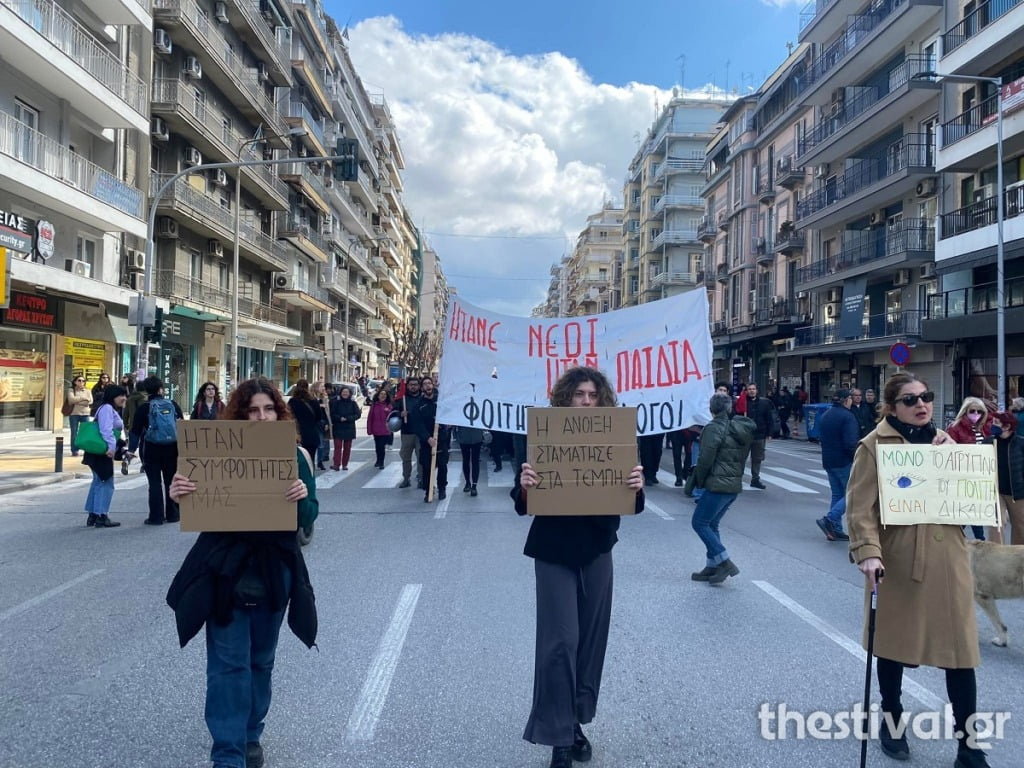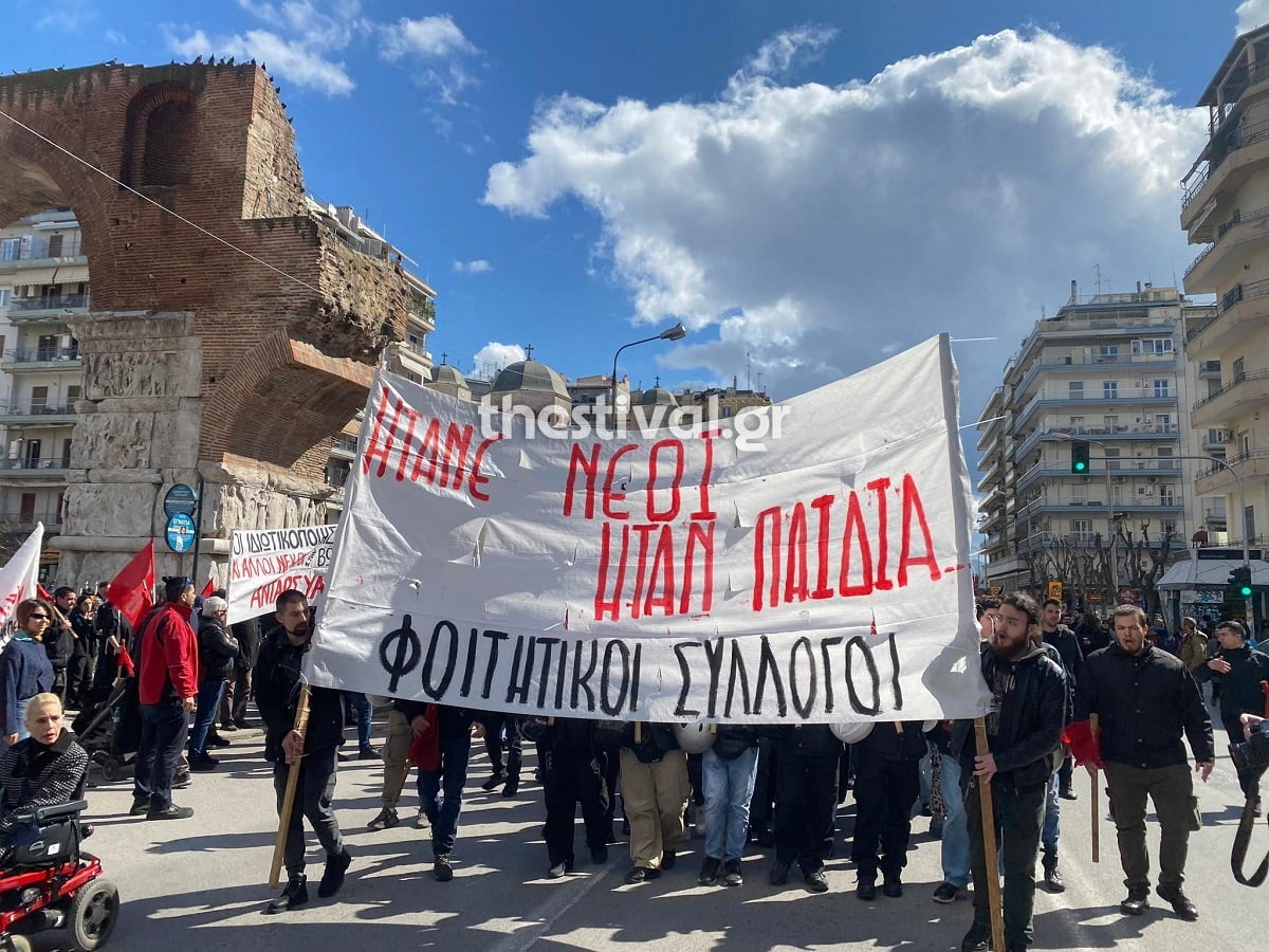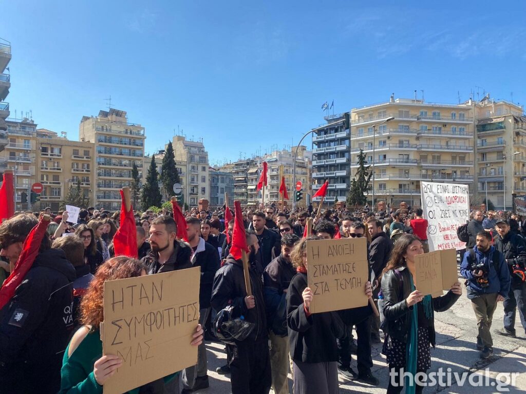 “Ήταν νέοι, ήταν παιδιά” – Πορεία διαμαρτυρίας για την τραγωδία των Τεμπών στο κέντρο της Θεσσαλονίκης (video)