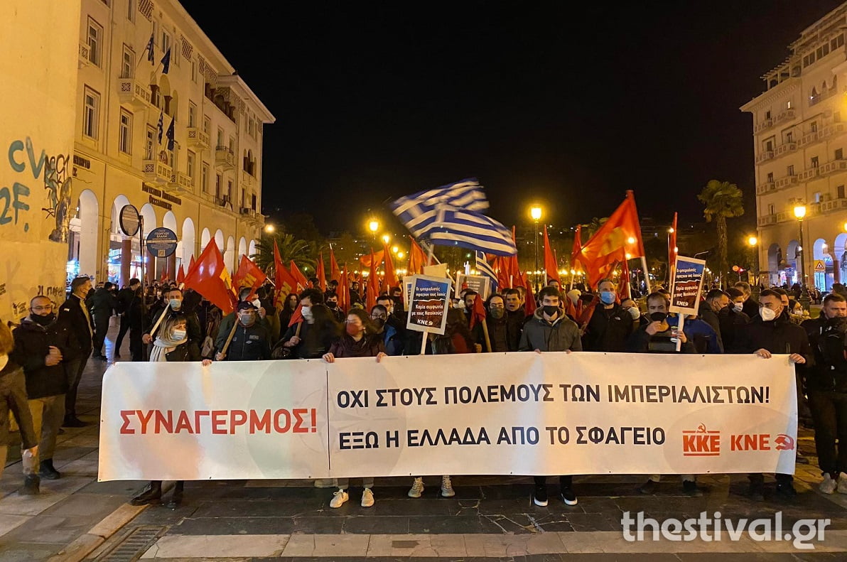 Η πορεία θα κινηθεί προς το αμερικανικό και ρωσικό προξενείο στη Θεσσαλονίκη. Νωρίτερα οι διαδηλωτές πραγματοποίησαν συγκέντρωση στο άγαλμα Βενιζέλου.