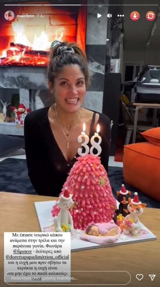 «Οι ευχές σας… αχ! Είστε ενα αριστούργημα και αληθινά σας ευγνωμονώ. 4 άνθρωποι σε τούτο το σαλόνι καταφέραμε δέκα λεπτά πριν φύγει η μέρα να κόψουμε την τούρτα. Δεν έχω γελάσει περισσότερο σε σβήσιμο κεριών και στα στοριζ μου θα καταλάβετε γιατί και επίσης δεν έχω ξανά τσιρίξει (χαμηλόφωνα) για τούρτα! Τα τελευταία χρόνια την τούρτα μου την ετοιμάζει η @adalivitsanou και μάλιστα πια, δεν της ζητάω καν εγώ τι θέλω να έχει. Παίρνει έμπνευση και δημιουργεί κάτι μοναδικό και ταιριαστό με την ζωή μου. Κάπως έτσι φέτος άνοιξα το κουτί και αντίκρισα αυτήν την ροζ φαντασμαγορία που ονοματίζω “Οι τρεις γάτοι με τα δώρα” και… Το Πιτσίνι. Αυτο είναι λοιπόν. 38! Πιο έτοιμη από ποτέ / Let’s do dis», έγραψε η Μαίρη Συνατσάκη.