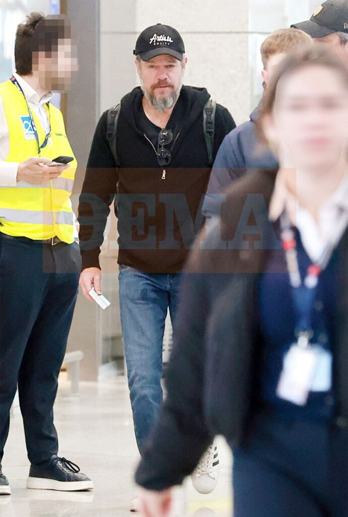 Το protothema.gr εξασφάλισε φωτογραφίες του 54χρονου σταρ του Χόλιγουντ στο αεροδρόμιο Ελευθέριος Βενιζέλος. Σύμφωνα με πληροφορίες, ο Ντέιμον ήρθε πριν από λίγες ημέρες, αναχώρησε προσωρινά και αναμένεται να επιστρέψει άμεσα για τη συνέχεια των γυρισμάτων. Ο ηθοποιός έφτασε στο αεροδρόμιο με casual ντύσιμο, φορώντας τζιν παντελόνι, μαύρο φούτερ και καπέλο και παρέμεινε ευδιάθετος καθ’ όλη τη διάρκεια της αναμονής του, περιμένοντας υπομονετικά την πτήση του μαζί με τους υπόλοιπους επιβάτες.