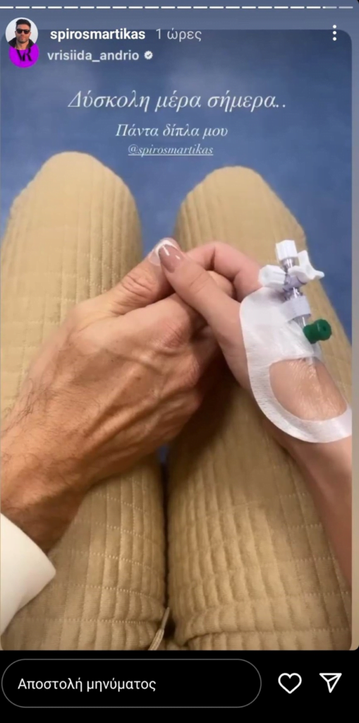 «Δύσκολη μέρα. Πάντα δίπλα μου» αρκέστηκε να γράψει η Βρισηίδα Ανδριώτου στην ανάρτησή της, κάνοντας tag τον σύντροφό της, Σπύρο Μαρτίκα.
