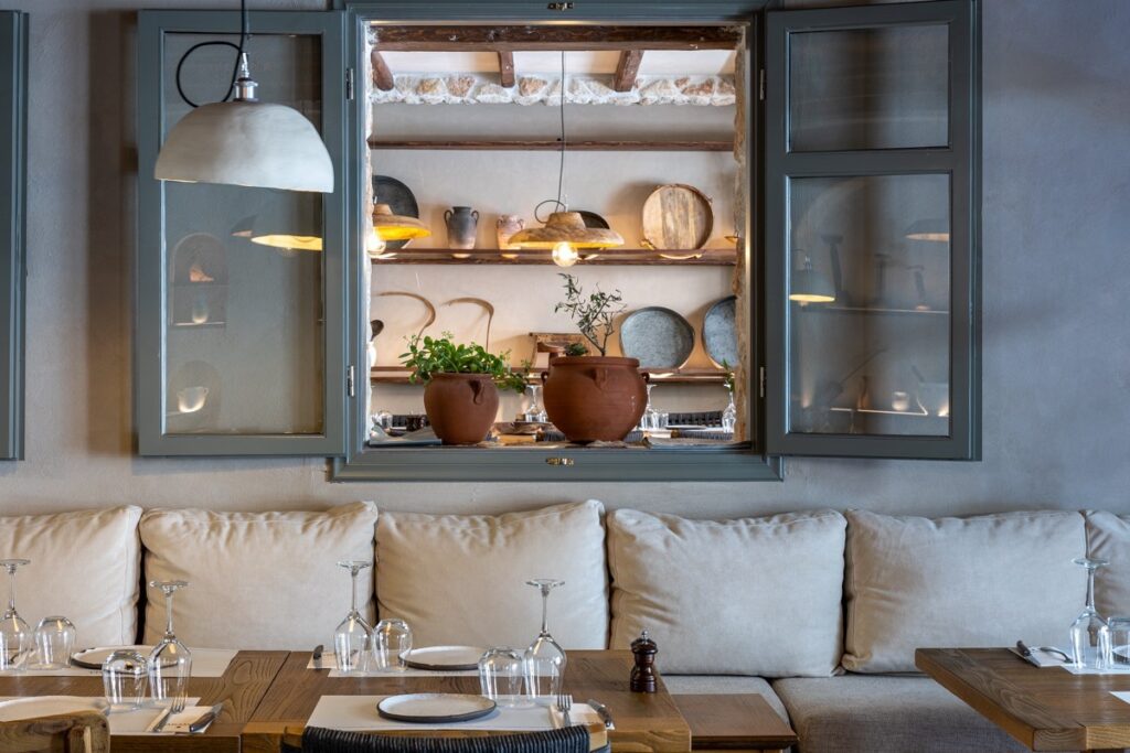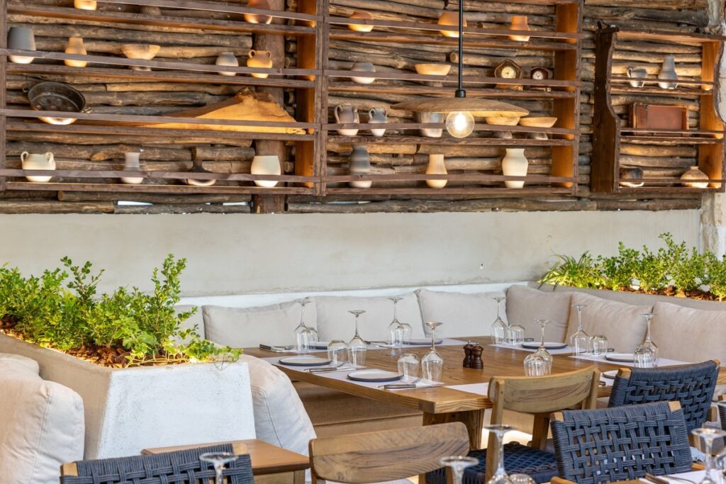 Κάθε σημείο του «Άναμα» μαρτυρά την φιλόξενη παράδοσή του εστιατορίου: Ξύλινα στοιχεία, πέτρα, πράσινο και ελληνική μουσική.