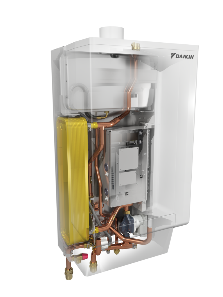 Υβριδικό σύστημα ονομάζεται κάθε σύστημα που χρησιμοποιεί δύο ή περισσότερες πηγές ενέργειας για να εξυπηρετήσει το σκοπό του. Στην περίπτωση της Daikin, είναι ένα ενιαίο σύστημα που περιλαμβάνει ένα λέβητα αερίου συμπύκνωσης και μια αντλία θερμότητας.