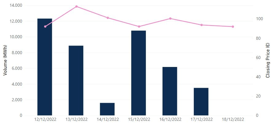 Σύμφωνα με τα στοιχεία του ελληνικού Χρηματιστηρίου Ενέργειας, η τιμή του ρεύματος πέφτει σταθερά από την προηγούμενη εβδομάδα, αν και οι σημερινές αποφάσεις των υπουργών Ενέργειας σχετικά με το πλαφόν στο φυσικό αέριο αναμένεται να επηρεάσουν την πορεία του το επόμενο διάστημα, καθώς μια συμφωνία για το πλαφόν στην τιμή του φυσικού αερίου θα ξεκλειδώσει ένα ευρύτερο πακέτο μέτρων για τον περιορισμό του υψηλού ενεργειακού κόστους.