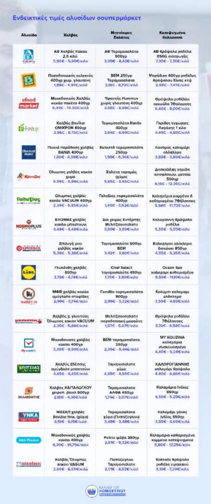Υπουργείο Ανάπτυξης: Oι τιμές στα σαρακοστιανά ανά αλυσίδα σούπερ μάρκετ