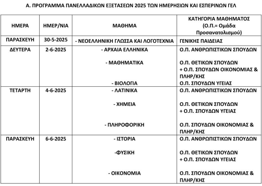 Πανελλήνιες εξετάσεις 2025: Ανακοινώθηκε το πρόγραμμα – Τα μαθήματα και οι ημερομηνίες εξέτασης
