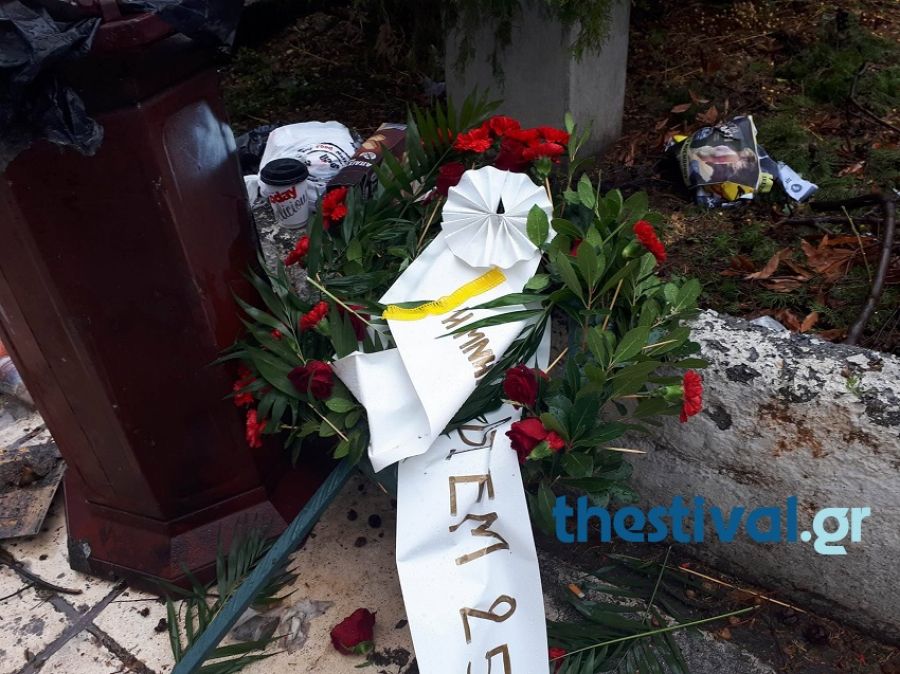Να σημειωθεί πως σε κάδο σκουπιδιών βρέθηκε χθες και το στεφάνι που κατέθεσαν εκπρόσωποι του ΣΥΡΙΖΑ Θεσσαλονίκης.
