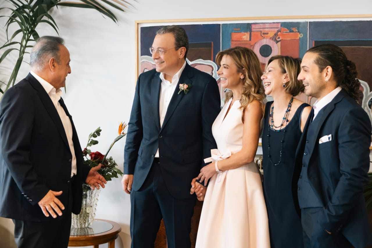 Παρόντες στην τελετή του πολιτικού γάμου ήταν μόνο τα παιδιά του ζεύγους και οι δύο μάρτυρες- κουμπάροι η Ερατώ Αλακιοζίδου και ο Φώτης Ξυνός.