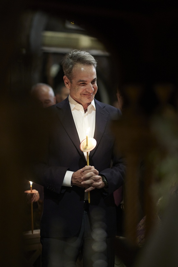 Τήνος: Κυριάκος Μητσοτάκης και Μαρέβα Γκραμπόφσκι παρακολούθησαν την Ακολουθία και την Περιφορά του Επιταφίου (φωτο)