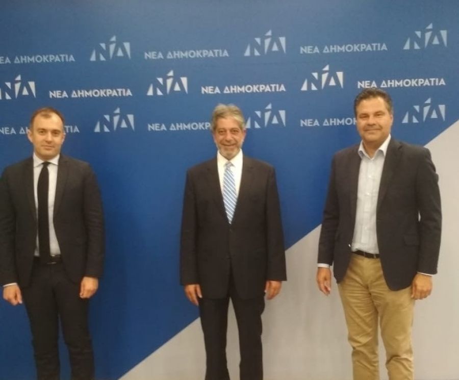 Ο Γραμματέας της Πολιτικής Επιτροπής της Νέας Δημοκρατίας κ. Γιώργος Στεργίου και ο Γραμματέας Διεθνών Σχέσεων και Ευρωπαϊκής Ένωσης της Νέας Δημοκρατίας και Βουλευτής Σερρών κ. Τάσος Χατζηβασιλείου συναντήθηκαν σήμερα, Πέμπτη 25 Ιουνίου, με τον επικεφαλής της διπλωματικής αποστολής της Παλαιστίνης στην Ελλάδα Πρέσβη κ. Marwan Toubassi.
