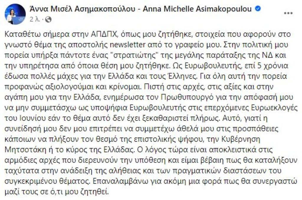 Αναλυτικά η ανάρτηση της Άννας Μισέλ Ασημακοπούλου: