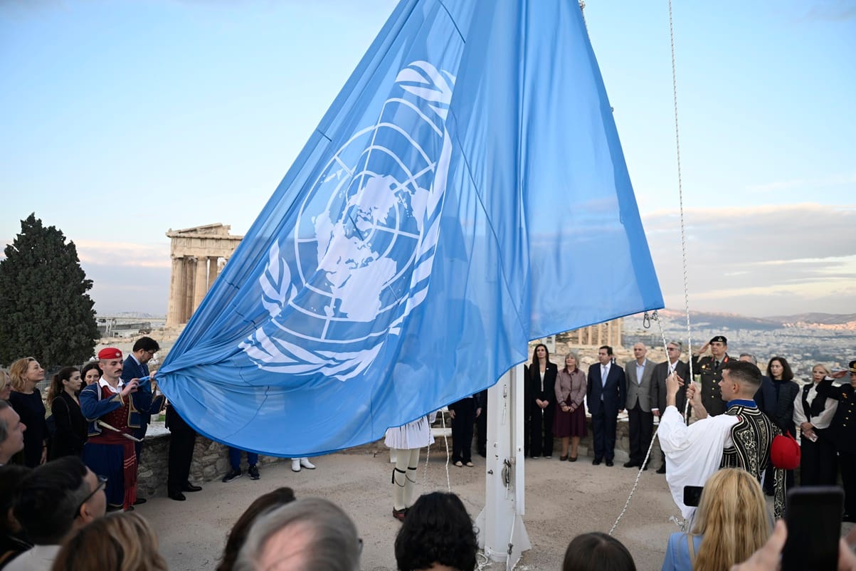 Τελετή για τα 80 χρόνια από την ίδρυση του Οργανισμού των Ηνωμένων Εθνών, πραγματοποιήθηκε το πρωί της Παρασκευής στον ιερό βράχο της Ακρόπολης.