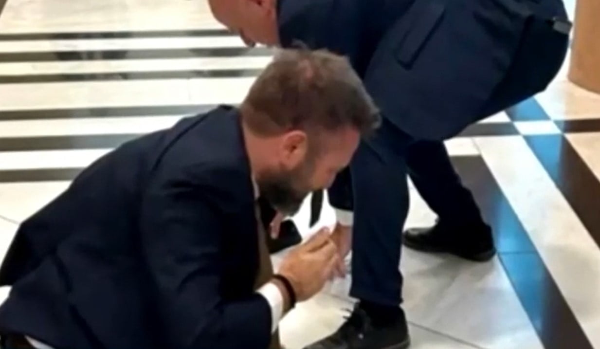 «Είχε αλλάξει χρώμα η μύτη του, ο άνθρωπος υποβασταζώμενος σηκώθηκε για να μεταφερθεί στο ιατρείο» δήλωσε ο βουλευτής της ΝΔ Χρήστος Μπουκώρος, που διακρίνεται σε φωτογραφίες να προσπαθεί να συγκρατήσει τον κ. Φλώρο.