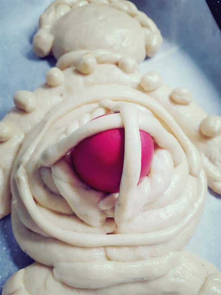 Όπως αναφέρει η ίδια, προκειμένου να φτιάξουν την παρμάκα, έδεναν τρεις παχιές λωρίδες ζύμης. Οι ακριανές λωρίδες γύριζαν σαν στριφτιές και έπειτα δημιουργούσαν τέσσερα σχέδια στις γωνίες. «Εγώ πήγαινα την παρμάκα. “Θα πάμε στη νουνά παρμάκα”, λέγαμε. Τα αυγά τα πηγαίναμε με το μαντήλι που τα κρατούσε ο σύζυγος. Είχαμε 41 αυγά την πρώτη χρονιά που πηγαίναμε, 31 τη δεύτερη και 21 τις υπόλοιπες χρονιές, όσες κι αν ήταν», προσθέτει.
