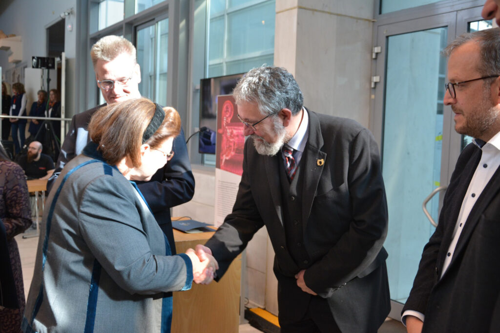 Στην τελετή παραβρέθηκαν ο πρύτανης του Πανεπιστημίου του Μύνστερ Johannes Wessels, ο διευθυντής του Αρχαιολογικού Μουσείου του Πανεπιστημίου του Μύνστερ Achim Lichtenberger, καθώς και οι επιμελητές του H.-Helge Nieswandt και Torben Schreiber, ο δήμαρχος Θεσσαλονίκης Στέλιος Αγγελούδης, η αντιπεριφερειάρχης Θεσσαλονίκης Βούλα Πατουλίδου, ο γενικός γραμματέας Πολιτισμού Γιώργος Διδασκάλου, η γενική διευθύντρια Αρχαιοτήτων Ολυμπία Βικάτου, η πρόεδρος του ΔΣ του Αρχαιολογικού Μουσείου Θεσσαλονίκης, Νίκη Μάνου-Ανδρεάδη, η γενική διευθύντρια του Αρχαιολογικού Μουσείου Θεσσαλονίκης, Αναστασία Γκαδόλου, η διευθύντρια Τεκμηρίωσης και Προστασίας Πολιτιστικών Αγαθών, Βάσω Παπαγεωργίου και άλλα στελέχη του υπουργείου Πολιτισμού.