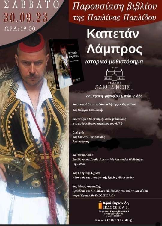 Θεσσαλονίκη: Σήμερα η παρουσίαση του βιβλίου της Παυλίνας Παυλίδου “Καπετάν Λάμπρος”