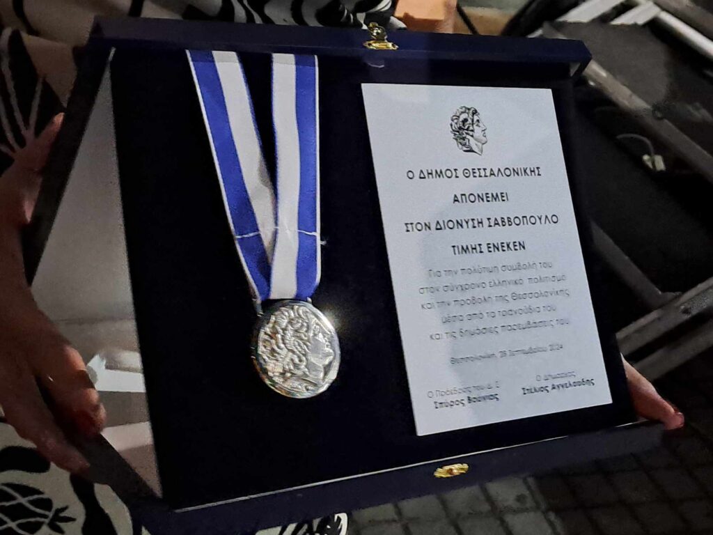 Το Αργυρό Μετάλλιο της πόλης απένειμε στον μεγάλο τραγουδοποιό, στιχουργό και συνθέτη Διονύση Σαββόπουλο, ο δήμαρχος Θεσσαλονίκης, Στέλιος Αγγελούδης, για όλα όσα έχει προσφέρει στον Πολιτισμό αυτής της χώρας.