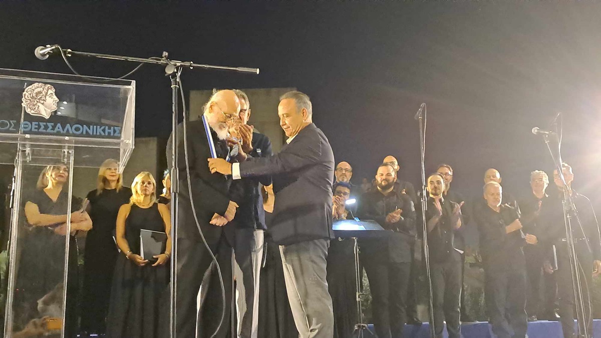 Η απονομή του αργύρου μεταλλίου στον σπουδαίο καλλιτέχνη, πραγματοποιήθηκε το απόγευμα του Σαββάτου, σε μια συγκινητική εκδήλωση, στον αύλειο χώρο του Δημαρχείου Θεσσαλονίκης.