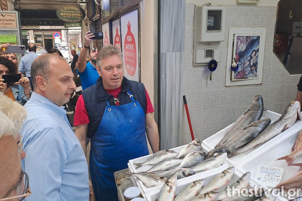 “Δεν έχουμε κίνηση στην αγορά γιατί είναι το κυκλοφοριακό, ο κόσμος που δεν έχει πού να παρκάρει. Το μετρό το περιμένουμε ακόμα να έρθει”, υποστήριξε ένας ιχθυοπώλης απευθυνόμενος στον κ. Καραγιάννη, ο οποίος του απάντησε λέγοντας: “Αρχές του 2024 τελειώσαμε. Κάναμε τη δοκιμαστική λειτουργία με τον υπουργό, το μετρό τελείωσε. Θα αρχίσουμε να φτιάχνουμε το Flyover. Θα τα λύσουμε όλα τα προβλήματα. Εδώ θα είμαστε, να ξέρεις”.