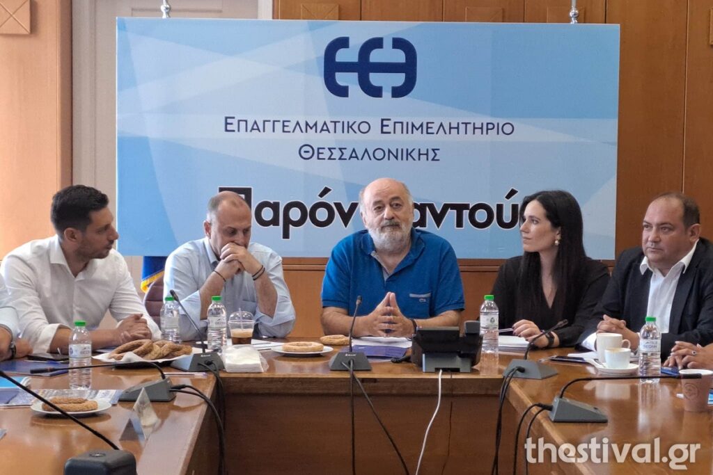 Αμέσως μετά, το κλιμάκιο της ΝΔ μετέβη στο Επαγγελματικό Επιμελητήριο Θεσσαλονίκης, όπου πραγματοποιήθηκε σύσκεψη με τον πρόεδρο Μιχάλη Ζορπίδη. Ο ίδιος, κατά την εισαγωγική του τοποθέτηση του ανέλυσε όλα τα προβλήματα που διαχρονικά αντιμετωπίζουν τα μέλη του κλάδου, με τα στελέχη της ΝΔ να δηλώνουν πως θα σταθούν στο πλευρό τους προκειμένου να δώσουν λύσεις σε αυτά.