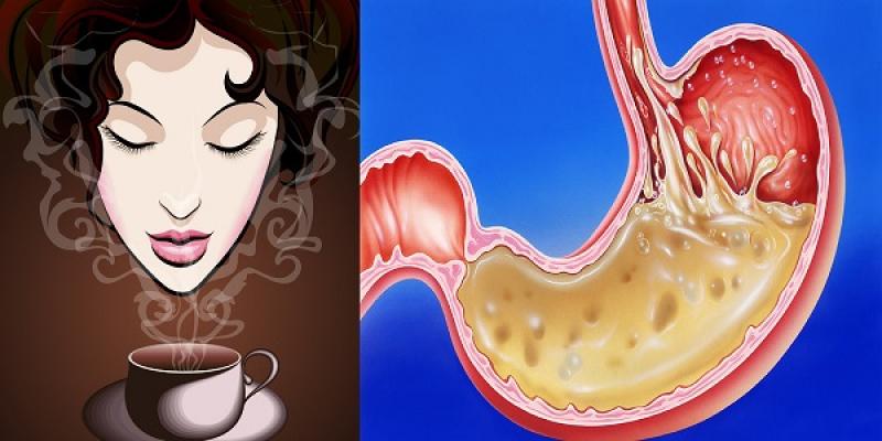 Πιο συγκεκριμένα, ένα φλιτζάνι σκέτου καφέ (φίλτρου, χωρίς γάλα ή ζάχαρη) με άδειο στομάχι διεγείρει την έκκριση του υδροχλωρικού οξέος στην πεπτική οδό. Αυτό γίνεται ιδιαίτερα αισθητό σε ανθρώπους που πάσχουν από γαστρίτιδα. Το υδροχλωρικό οξύ χρησιμοποιείται για να αποσυνθέσει τις τροφές στο στομάχι. Τα πεπτικά προβλήματα που προκαλούνται από αυτό μπορεί να γίνουν αντιληπτά πιο μετά, όταν ο οργανισμός θα αδυνατεί να αφομοιώσει κάποιο βαρύ γεύμα, αφού θα είναι ιδιαίτερα δύσκολο να αποσυντεθούν οι πρωτεΐνες στο στομάχι και το έντερο.